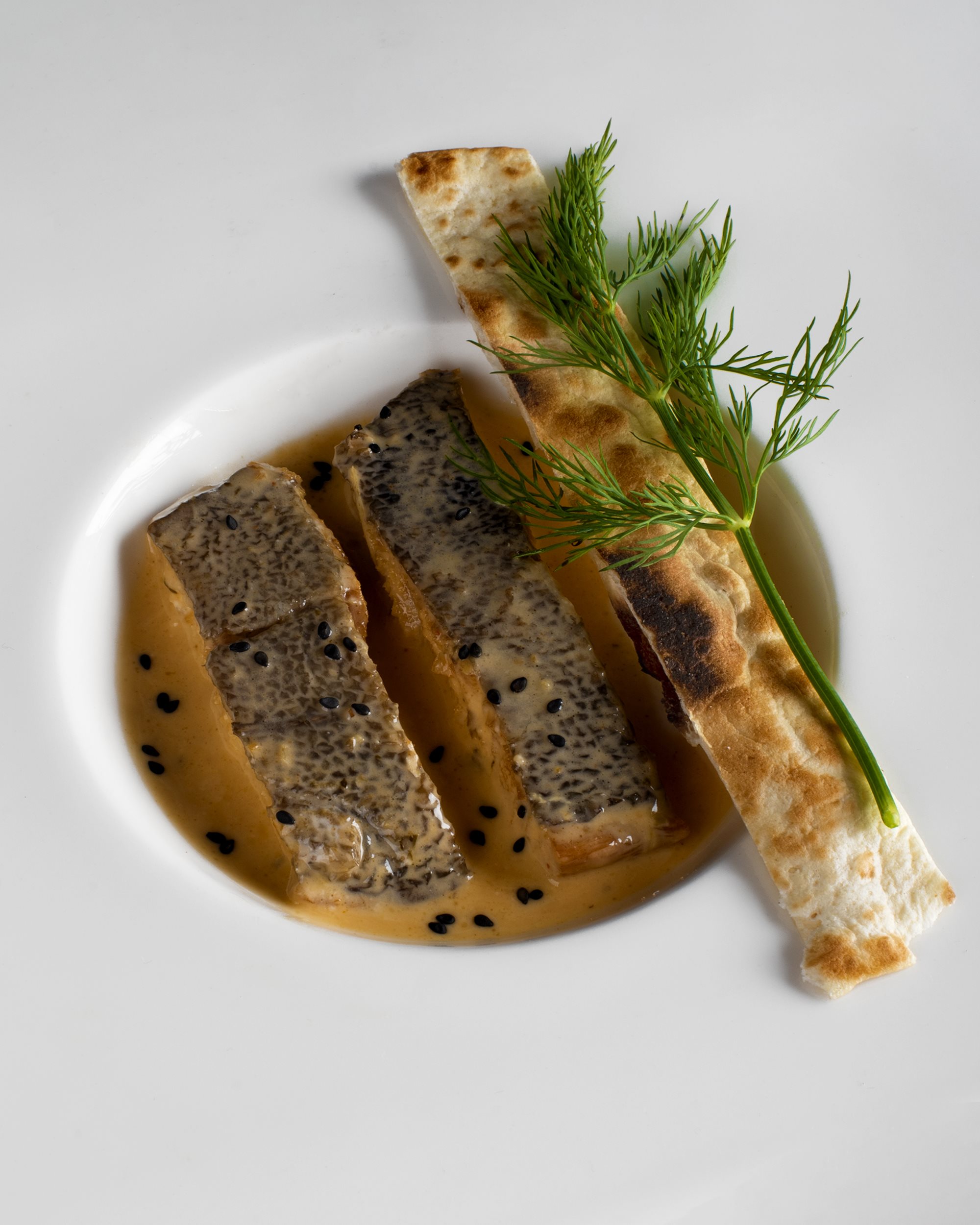 Serveringsforslag: Vi plejer at fjerne skindet og servere grillet brød til. José Gourmet foreslår at servere ristet naanbrød til. De fleste mousserende vine med lang andengæring, vil spille til den cremede fisk, f.eks. Provams Côto de Mamoelas.