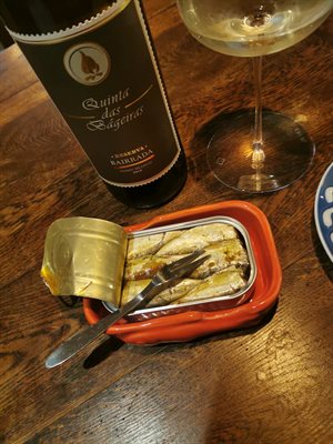 Serveringsforslag: Det er svært at udbene de små sardiner, og vi anbefaler at spise dem hele. Vi serverer de små faste sardiner til et glas Tawny portvin med lidt alder, f.eks. Quinta do Novals 20-årige Tawny med lidt peberfrugtpesto under. Eller bare "on the rocks" i et af José Gourmets yndige fiske-keramikskåle med et par humpler brød til og en Quinta das Bageiras Branco Reserva til.